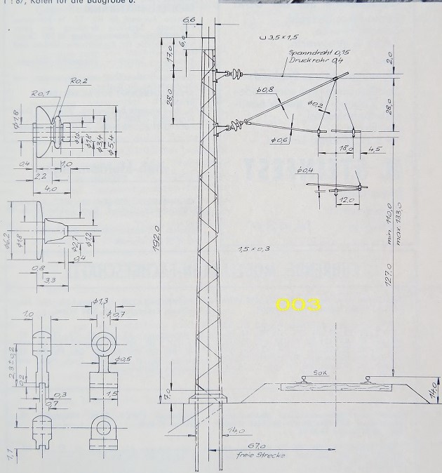 Wenn Interesse an weiteren Plänen Unterlagen oder Bildern dieser Anlage besteht………. Ein Telefon oder eine mail an mich genügt. Es sind auch noch Schleudergussteile sowie fertige Masten ( als Muster ) für den Bau dieser Oberleitung vorhanden.