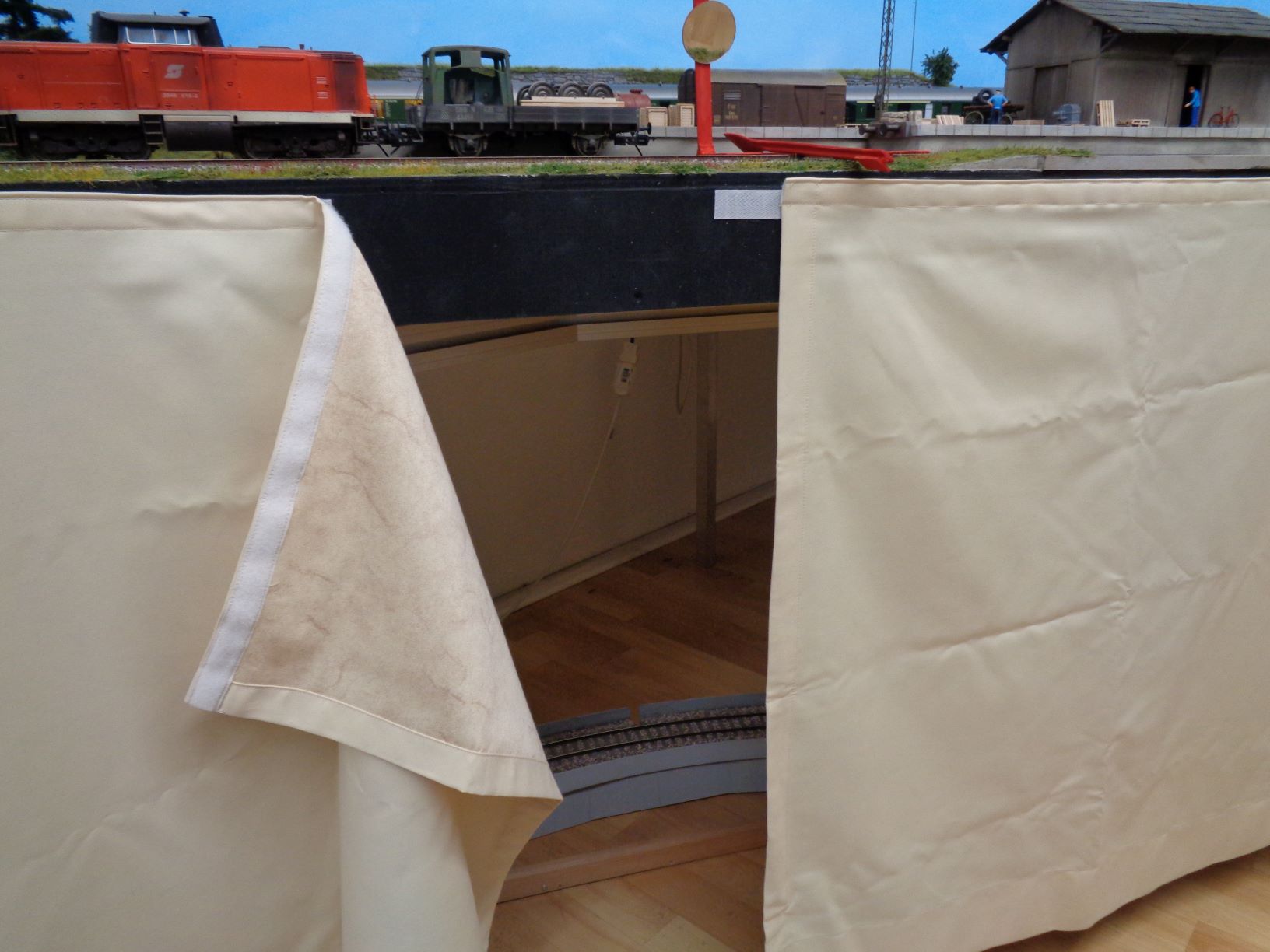 Und zu guter Letzt : damit im Anlagenraum immer sauber aufgeräumt ist, reichen etwas Klettverschluss und ein Vorhang……… (Bilder 24-26)