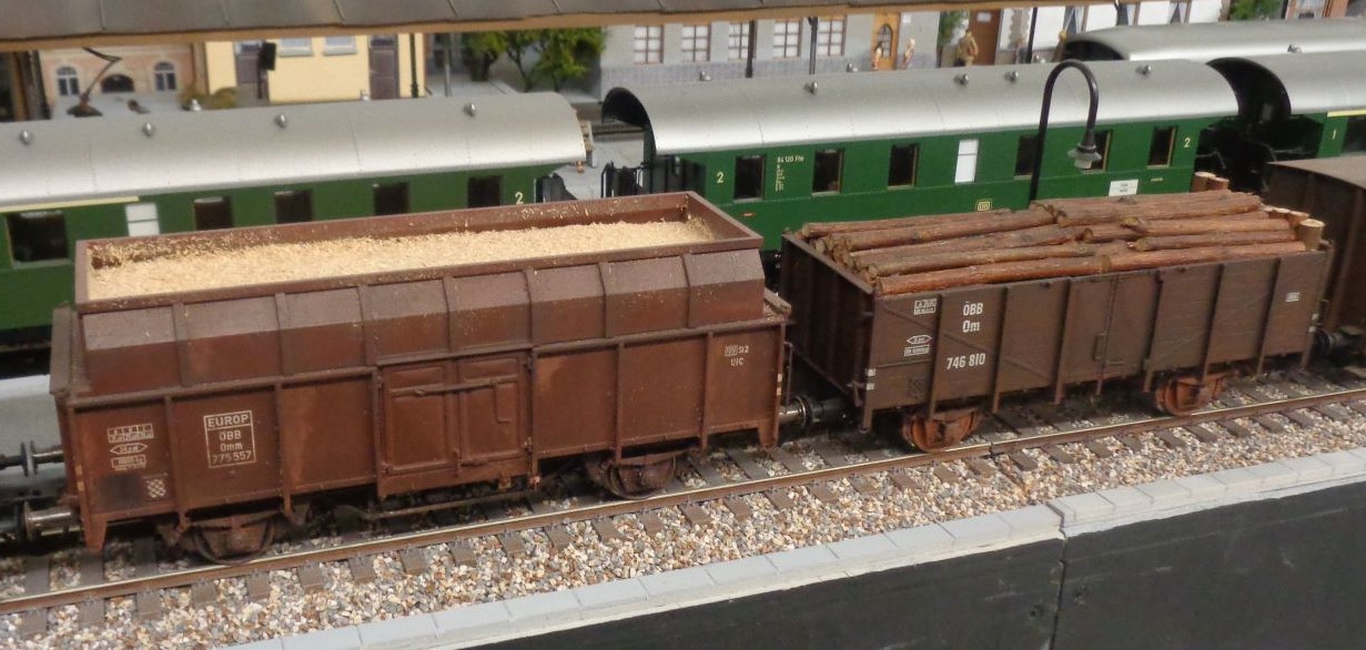 Unten seht Ihr ein paar Bilder meiner gealterten und beladenen Wage. Auch hier muss ich sagen ich habe keine genaue Ahnung der Ladevorschriften aber ein Wagen mit Güter drauf ( für Güter die Bahn ) schaut doch allemal besser aus als ein leerer und blanker Güterzug welcher grad durch die Waschanlage gezogen wurde ( siehe letztes Bild)